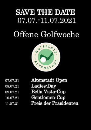 Die offene Golfwoche startet am Mittwoch den 07.07. mit einer Altenstadt Open "Spezial" und endet am 11.07.21 mit dem Preis der Präsidenten.