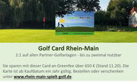 „Rhein Main spielt Golf“ das regionale Golfportal im Rhein-Main Gebiet, bietet die neue Vorteilskarte „Golf Card Rhein-Main“ an, welche Greenfee-Vergünstigungen und weitere Angebote beinhaltet.