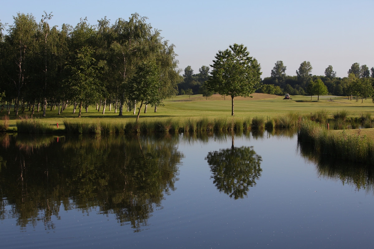 - Typisches Landschaftsbild: spannende Wasserhindernisse, flache offene Anlage