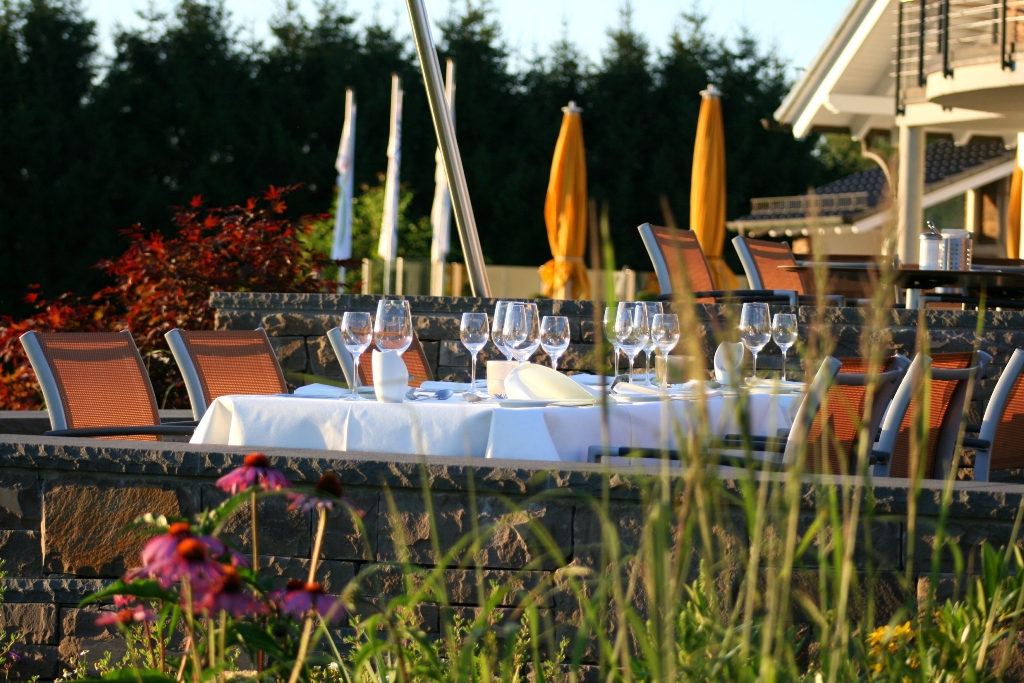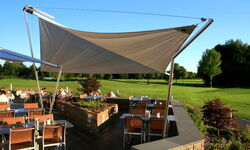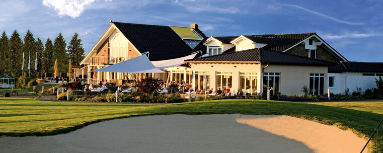 Zurück von einer spannenden Golfrunde gibt es nichts Schöneres, als den Tag mit Freunden auf einer der drei Sonnenterrassen oder in der Brasserie des Clubhauses noch einmal Revue passieren zu lassen. Das Clubhaus ist im modernen Landhauscharakter gestaltet und verfügt neben verschiedenen Tagungsräumen über eine Kaminhalle und einen gemütlichen Barbereich. Während auf den Terrassen und in der Brasserie leckere Kleinigkeiten serviert werden, erwartet den Gast im stilvollen Restaurant ausgewählte Gerichte vom Feinsten.